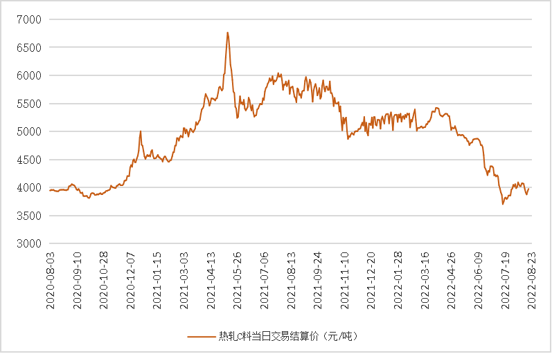 截至2022年8月23日,新华·山东港口热轧C料价格指数报3978元/吨,较前一交易日上涨41元/吨,涨幅1.04%。