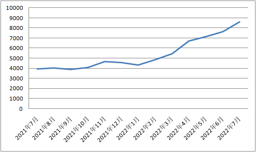 图:2021年7月-2022年7月中国进口保税航空煤油到岸价格走势