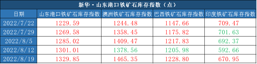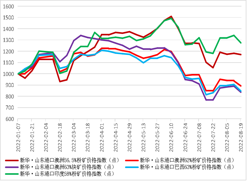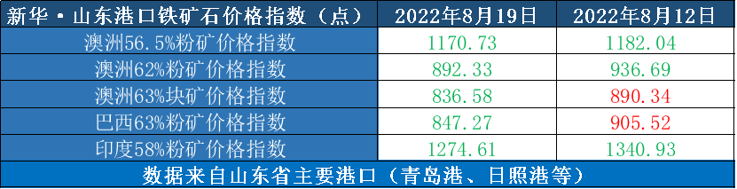 新华财经·指数|新华·山东港口铁矿石系列指数周报(2022.8.13-2022.8.19)