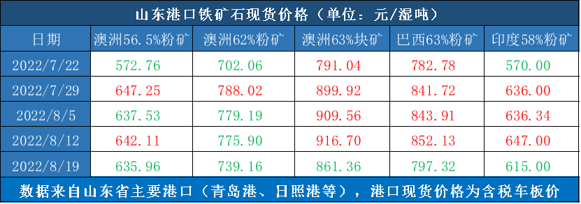 截至2022年8月19日,新华·山东港口铁矿石价格指数偏弱运行。
