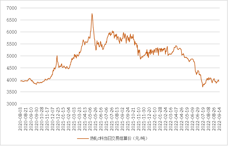 截至2022年9月14日,新华·山东港口热轧C料价格指数报3934元/吨,较前一交易日下跌66元/吨,跌幅1.65%。