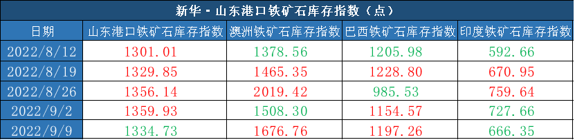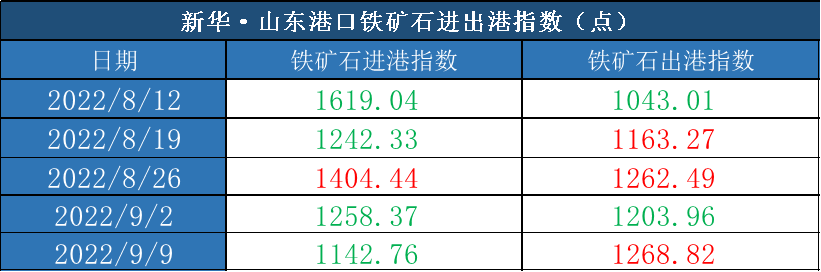 新华财经·指数|新华·山东港口铁矿石系列指数周报(2022.9.3-2022.9.9)