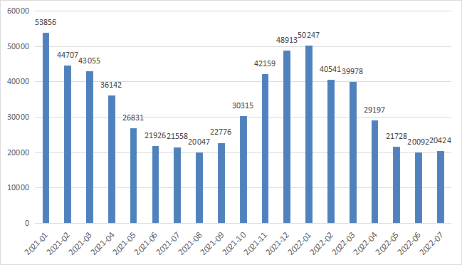 根据欧盟统计数据,今年1-7月,天然气消费量为2481亿立方米,较去年同期下降259亿立方米,降幅为10.43%。2021年,欧盟全年天然气消费量为4123亿立方米。