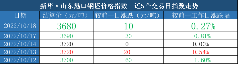 新华财经·指数|山东港口大商中心钢坯、热轧C料价格指数日报(10月18日)