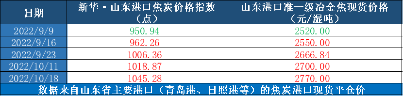 新华财经·指数|新华·山东港口焦炭系列指数周报(2022.10.11-2022.10.18)