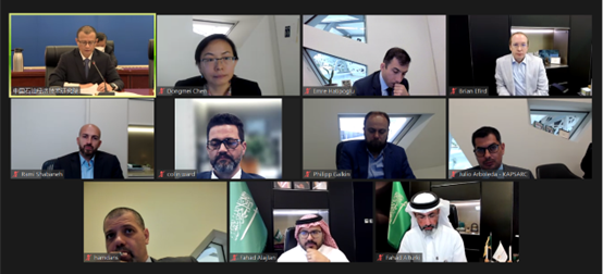 在合作交流环节,中石油经研院石油市场研究所所长王利宁和KAPSARC油气团队Collin博士分别就“2060能源展望”和“短期石油市场分析”做了学术报告,并就新能源发展趋势、中国天然气发展前景、短期石油市场不确定性等共同关心的议题进行了深入交流讨论。