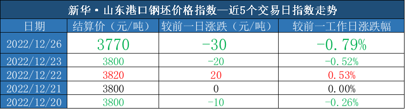 新华财经·指数|12月26日山东港口大商中心钢坯、热轧C料价格皆微幅下跌