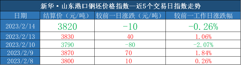 新华指数|2月14日山东港口大商中心钢坯、热轧C料价格皆微幅下行