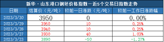 新华指数|3月30日山东港口大商中心钢坯价格持平、热轧C料价格微幅上涨