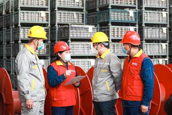 图为国网济源供电公司工作人员走访企业用户,了解企业生产经营情况和用电需求