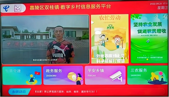 ——构建数字乡村信息服务平台,让乡村治理更“智慧”。依托政务IPTV、魔镜慧眼、天虎云商等平台与资源,四川电信创新构建了数字乡村信息服务平台,涵盖智慧党建、政务服务、平安乡镇、三农服务等内容,通过网络将行政村与镇政府紧密地联系起来,满足农村养殖、家畜、商铺、农场等生产看护和“区、乡(镇)、村”分级管理治安联防等多种需求。除了及时反馈各种需要整治的日常问题之外,村民们还可以通过平台售卖农产品,查询企业招聘信息。