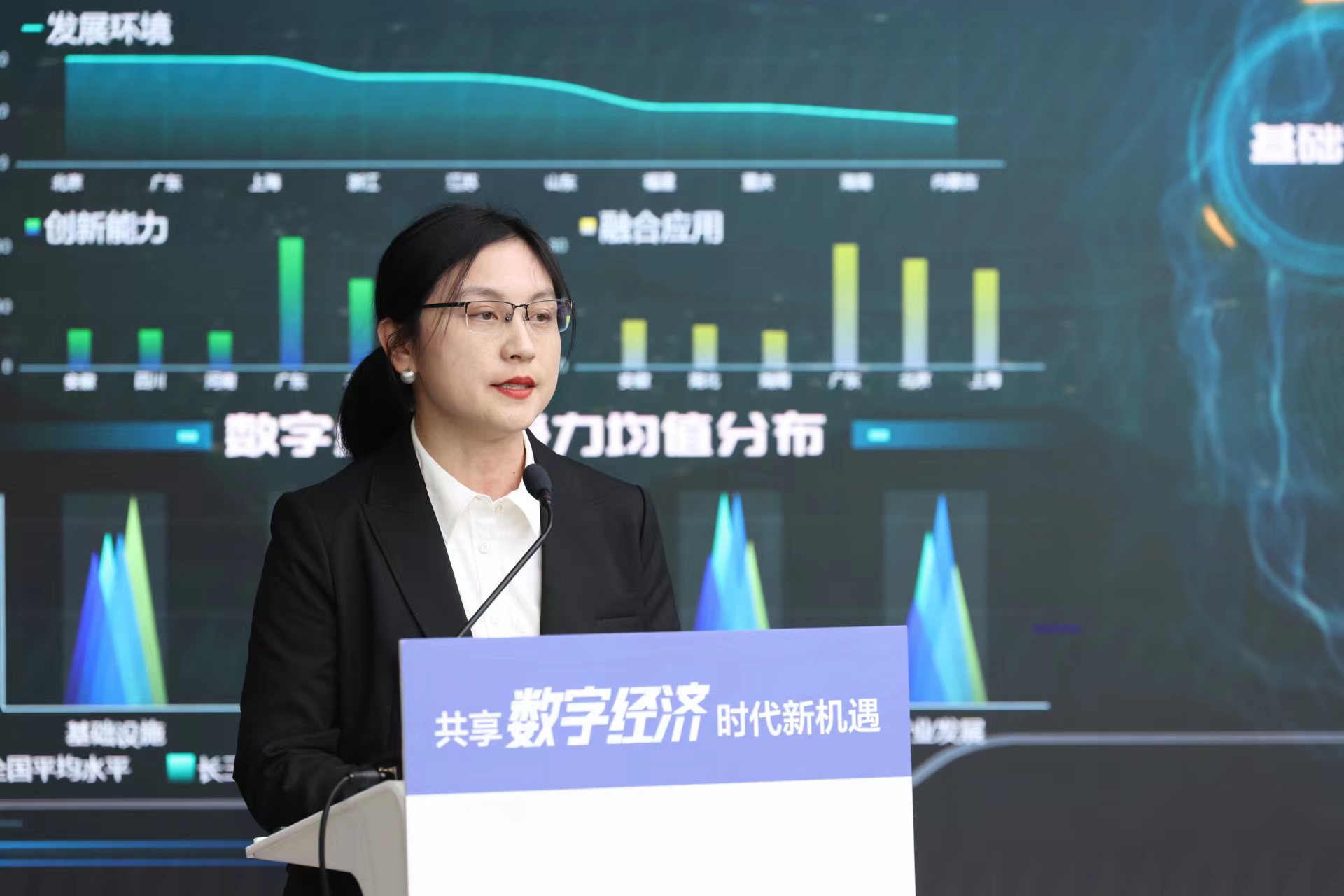图为中经社数字经济评价工作室主任李倩倩现场发布报告(王吉如 摄)