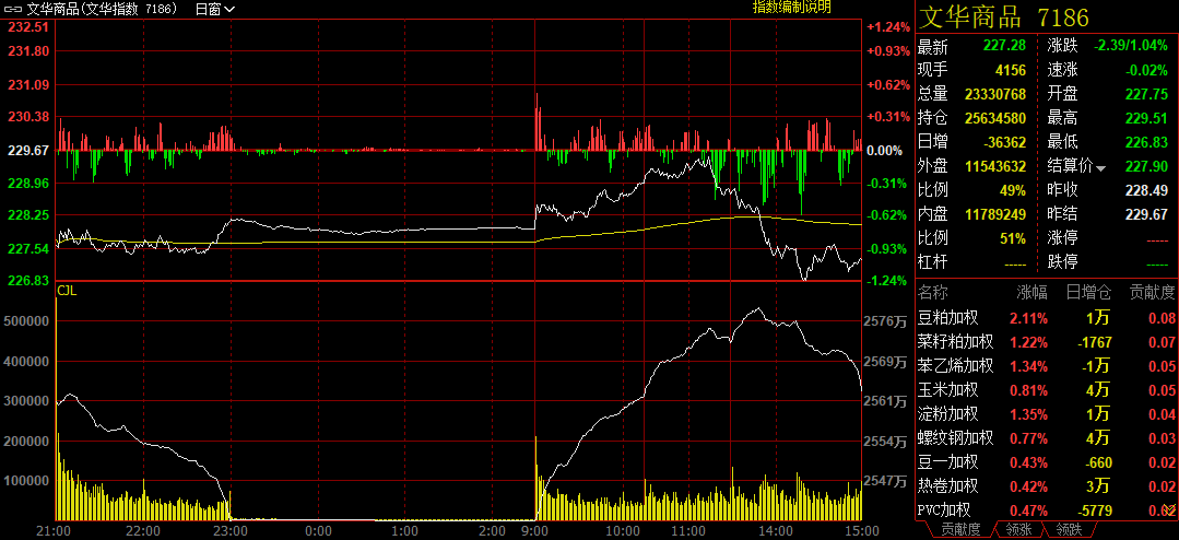 【商品日报】工业品走弱焦煤跌超4% 逾5亿资金助力豆粕涨超2%