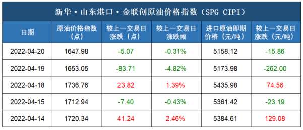 新华财经·指数|山东港口进口原油到岸价格指数日报(4月21日)