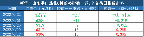 新华财经·指数|山东港口大商中心钢坯、热轧C料价格指数日报(4月22日)