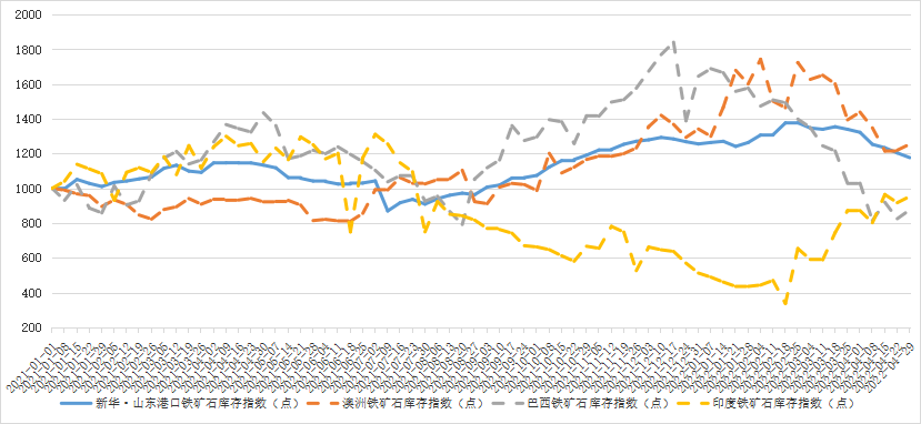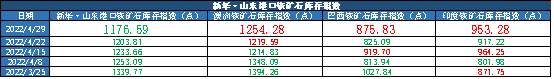 新华财经·指数|新华·山东港口铁矿石库存及进出港指数周报(2022.4.23-2022.4.29)