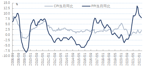 PPI环比连续上涨,海外输入性因素的影响较大。目前乌克兰危机加剧供应链的不确定性,能源、金属等大宗商品价格或将保持高位,海外主要经济体加速收紧货币政策,通过收缩需求抑制价格上涨压力。