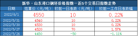 新华财经·指数|山东港口大商中心钢坯、热轧C料价格指数日报(6月1日)
