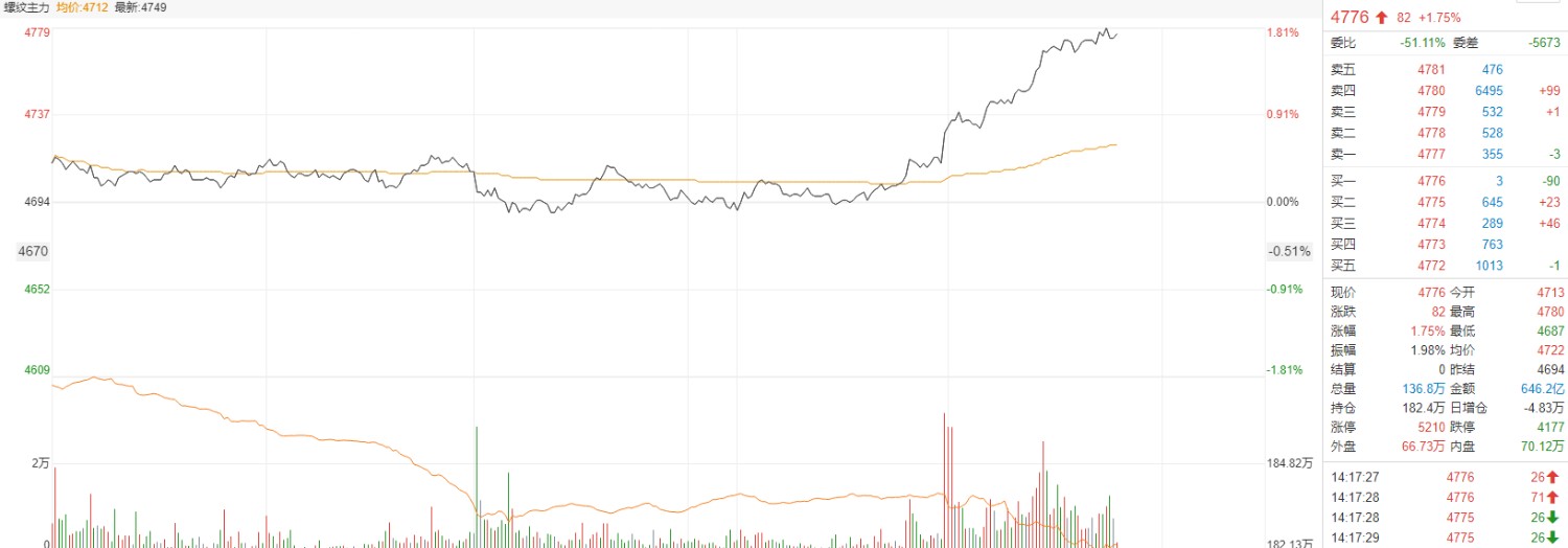 综合来看,邱跃成表示,在宏观政策宽松不断发力的情况下,需求端有所恢复,供需边际改善。短期螺纹盘面或将延续震荡偏强走势。