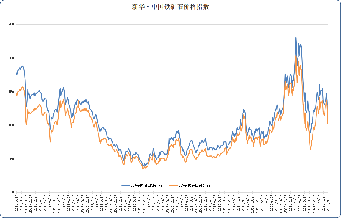 “新华·中国铁矿石价格指数”是中国经济信息社自主研发的数据产品之一,依托自身遍布全球的信息采集网络进行数据采集、加工和分析,结合相关领域专家的观点,并综合考虑多种因素后,由专家顾问团队得出的结果。