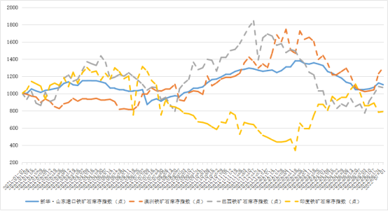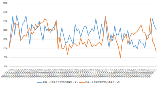 新华·山东港口铁矿石库存指数、新华·山东港口铁矿石进港指数以及新华·山东港口铁矿石出港指数是新华·山东港口大宗商品指数体系的组成部分,由中国经济信息社与山东省港口集团共同编制并发布。