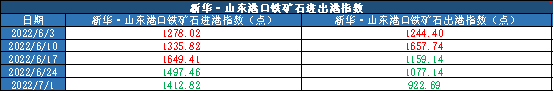 新华财经·指数|新华·山东港口铁矿石库存及进出港指数周报(2022.6.25-2022.7.1)