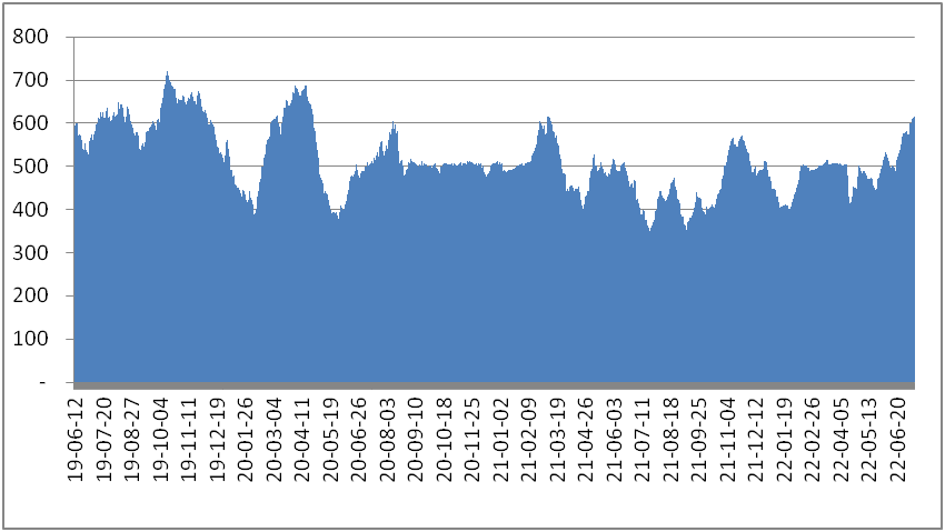 图表:秦皇岛港港口煤炭库存(单位:万吨)