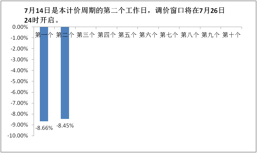 成品油:中国汽、柴油批发价格显示,7月13日中国汽、柴油批发价格下跌。全国92#汽油平均批发价格为9346元/吨,较前一日下跌135元/吨;柴油(含低凝点)平均批发价格为8438元/吨,较前一日下跌111元/吨。当日市场整体情况来看,国际油价12日暴跌,新一轮调价周期一揽子原油平均价格变化率仍负向开启,消息面缺乏有利支撑,各经营主体出货不畅,销售政策更加灵活,但业者观望情绪增加,终端入市采购稀少,市场购销气氛清淡。