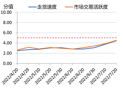 注:0代表“走货很慢”、“市场很冷清”,5代表“正常/一般”,10代表“走货很快”、“市场很活跃”。