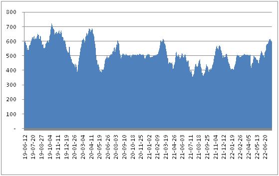 图表:秦皇岛港港口煤炭库存(单位:万吨)