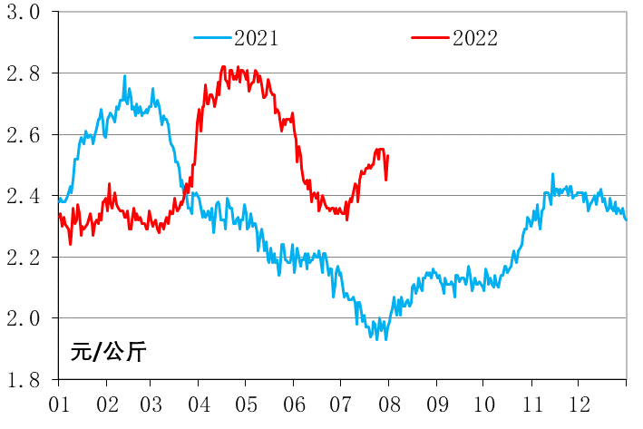 同期,中原二作区大田薯收获期拉长、西南混作区稳步出货、北方一作区高价早熟马铃薯陆续上市等,带动了全国商品薯批发价格亦是持续上调。截至7月29日,全国商品薯销地批发周度均价报2.54元/公斤,月内累计上涨8.01%;同比上一年七月末上涨29.29%。