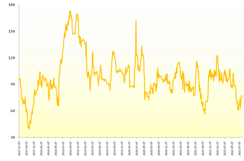 新华财经北京8月8日电(李伯罧、薛志烜) 2022年8月5日,新华-中国香蕉产地价格指数报75.96点,较7月29日下跌0.21点,跌幅0.28%;较基期下跌24.04点,跌幅24.04%。