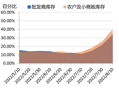 图4 全国七大花椒主产区产地库存百分比均值(调查数据)