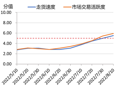 注:0代表“走货很慢”、“市场很冷清”,5代表“正常/一般”,10代表“走货很快”、“市场很活跃”。