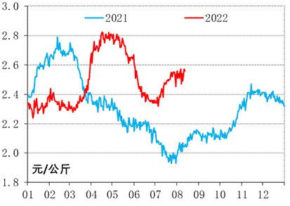 新华财经北京8月15日电(张保贺、杨猛、俞昱邦) 受北方雨季影响,近期全国蔬菜批发价格小幅回调,商品薯价格继续维持高位运行。截至2022年8月12日,农业农村部重点监测的28种蔬菜批发均价为4.57元/公斤,环比(8月5日,下同)上涨1.33%;同比(2021年8月13日,下同)下跌1.72%。当周,全国商品薯销地批发周度均价报2.53元/公斤,环比上涨0.51%;同比上涨23.80%。目前,新薯上市量稳步提升,全国商品薯价格看跌。然而北方一作区持续降水以及全国极端高温天气等影响了国内商品薯供给,因此全国商品薯价格有望短期内维持高位运行。