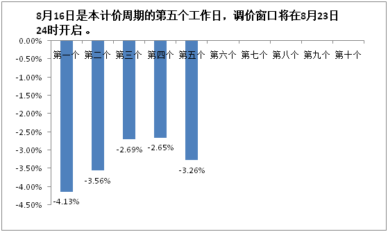 原油:由于宏观经济利空打压市场人气,15日国际油价显著下跌。截至当天收盘,纽约商品交易所9月交货的轻质原油期货价格下跌2.68美元,收于每桶89.41美元,跌幅为2.91%。10月交货的伦敦布伦特原油期货价格下跌3.05美元,收于每桶95.10美元,跌幅为3.11%。