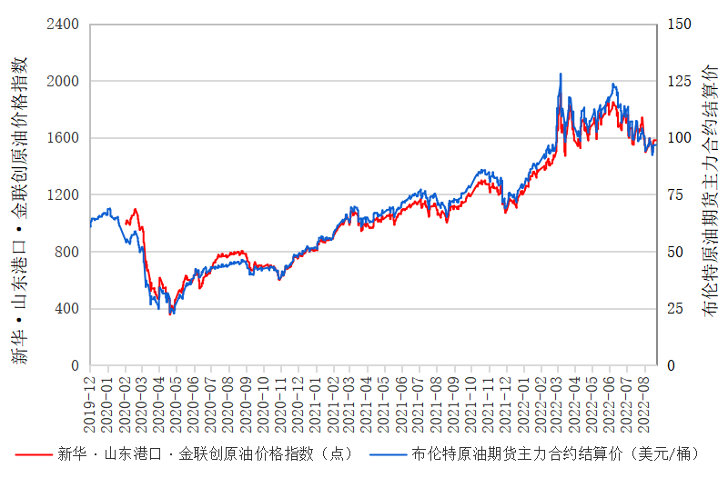 山东港口进口原油到岸价格指数包含新华·山东港口·金联创原油价格指数(SPG CIPI)和山东港口进口原油到岸贴水估价,由中国经济信息社联合山东省港口集团、金联创共同编制并发布。其中,山东港口进口原油到岸贴水估价是统计2个月后到港原油的交易贴水,综合反映山东港口原油现货市场交易情况。SPG CIPI以山东港口进口原油到岸贴水估价为基础,综合各种不同进口原油的比重编制而成,直观反映了山东港口进口原油实际进口成本的变化趋势。