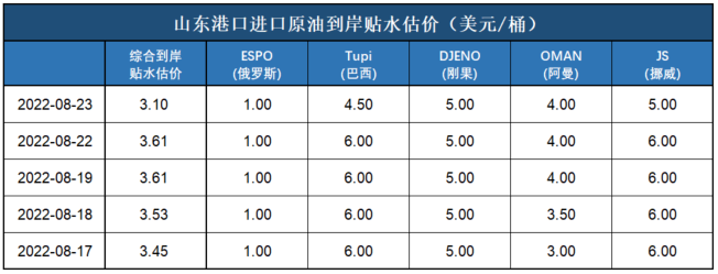 新华财经·指数|山东港口进口原油到岸价格指数日报(8月24日)