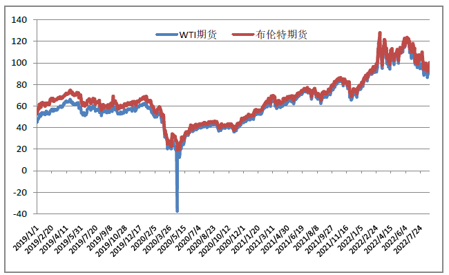 图表:国际原油期货价格走势(单位:美元/桶)