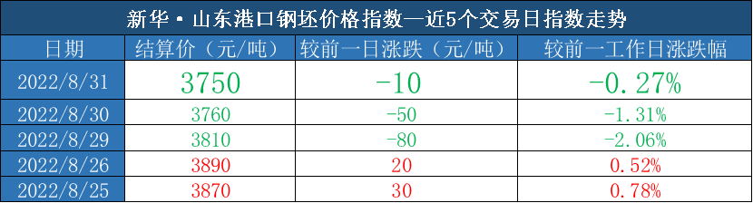 新华财经·指数|山东港口大商中心钢坯、热轧C料价格指数日报(8月31日)