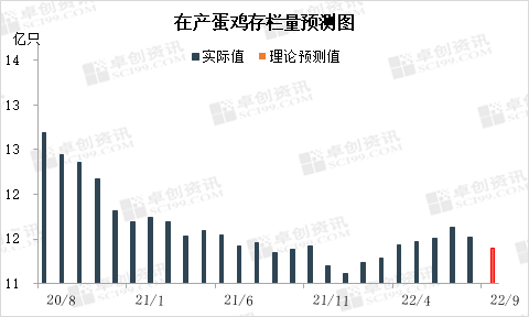 淘汰鸡方面,养殖单位大多在中元节和中秋节前淘汰老鸡,9月份适龄待淘老鸡有限,但淘汰鸡出栏量或略大于新开产蛋鸡数量,因此9月份在产蛋鸡理论存栏量或略减,预计在产蛋鸡存栏量环比减幅在1.00%左右,预计较近五年的平均值低4%左右,鸡蛋供应量偏紧。
