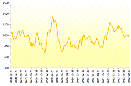 2022年8月31日,新华-进口香蕉价格指数报1009.48点,较8月24日上涨12.94点,涨幅1.30%;较基期上涨9.48点,涨幅0.95%。