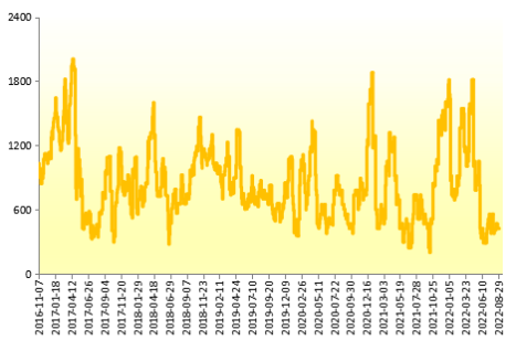 2022年9月2日,新华-中国(海南)皇帝蕉产地价格指数报422.22点,较8月26日下跌44.86点,跌幅9.60%;较基期下跌577.78点,跌幅57.78%。