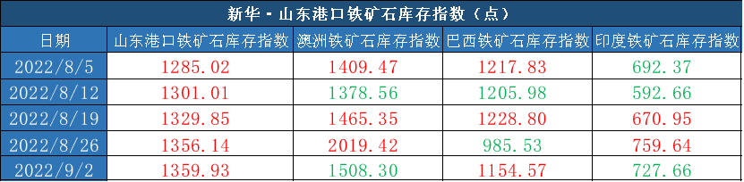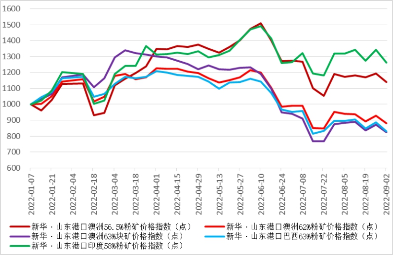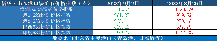 新华财经·指数|新华·山东港口铁矿石系列指数周报(2022.8.27-2022.9.2)