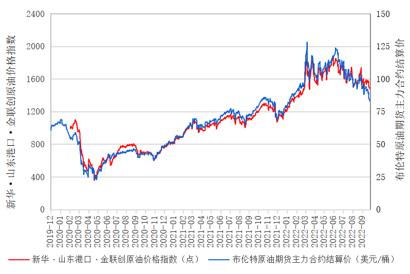 山东港口进口原油到岸价格指数包含新华·山东港口·金联创原油价格指数(SPG CIPI)和山东港口进口原油到岸贴水估价,由中国经济信息社联合山东省港口集团、金联创共同编制并发布。其中,山东港口进口原油到岸贴水估价是统计2个月后到港原油的交易贴水,综合反映山东港口原油现货市场交易情况。SPG CIPI以山东港口进口原油到岸贴水估价为基础,综合各种不同进口原油的比重编制而成,直观反映了山东港口进口原油实际进口成本的变化趋势。