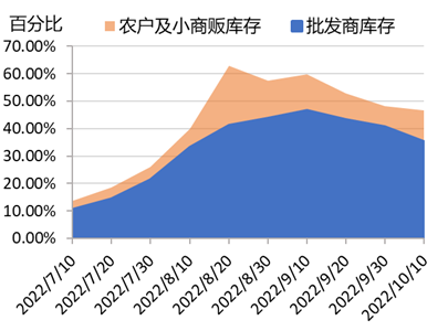 图4 全国七大花椒主产区产地库存百分比均值(调查数据)
