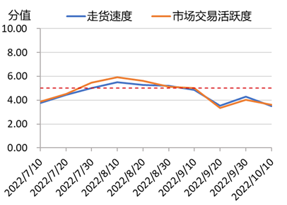 注:0代表“走货很慢”、“市场很冷清”,5代表“正常/一般”,10代表“走货很快”、“市场很活跃”。