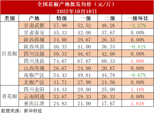 新华财经·指数|十月上旬花椒市场走货速度放缓,各地花椒市场价格涨跌互现