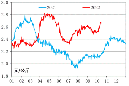 新华财经北京10月17日电(张保贺、杨猛、俞昱邦) 节后,全国蔬菜批发价格继续上行,其中供应收紧的商品薯价格亦是上涨。截至2022年10月14日,农业农村部重点监测28种蔬菜批发价格报5.01元/公斤,较节前(9月30日,下同)上涨3.94%;同比(2021年10月15日,下同)下跌2.72%。当周,全国商品薯销地批发周度均价报2.64元/公斤,环比(10月7日,下同)上涨3.65%;同比上涨23.33%。期间,采购商储货积极,叠加运输管控提升,全国商品薯供给偏紧而价格持续上行。其中,除本地消费为主的粉质商品薯外,定西商品薯产地批发价格偏强运行。