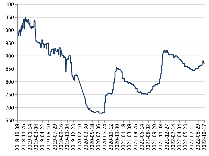 数据显示,截至10月20日,新华(阿拉尔)红枣价格指数报869.00点,周环比下跌0.49%,分地区看,新疆产区红枣价格指数周环比持平,批发市场红枣价格指数周环比下跌0.74%。
